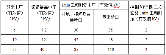 用2500V搖表測試主回路絕緣電阻不低于500MΩ,控制和輔助二次回路用2500V搖表測試絕緣電阻不低于10MΩ,方可進(jìn)行工頻耐壓試驗(yàn),加壓標(biāo)準(zhǔn)見上表。