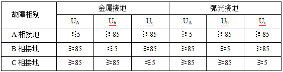 做單相金屬接地和單相弧光接地試驗(yàn)時的加壓數(shù)值見下表(單位:V),裝置相應(yīng)的輸出信號接點(diǎn)應(yīng)接通。