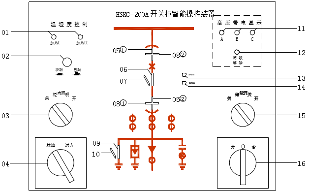HSKG-200A系列開關(guān)智能操控裝置 集成了一次回路模擬圖顯示斷路器狀態(tài)、開關(guān)狀態(tài)、接地刀狀態(tài)、彈簧儲能狀態(tài)顯示,高壓帶電指示,高壓帶電閉鎖控制及環(huán)境溫濕度控制等多種功能于一體。各種功能可自由組合,另外該系列產(chǎn)品采用了單片機(jī)技術(shù)實現(xiàn)對開關(guān)柜中各種元件工作狀態(tài)的采集,除濕加熱控制與加熱回路故障診斷,并能夠通過RS-485總線與后臺監(jiān)控計算機(jī)組網(wǎng)通信,便于實現(xiàn)對于采用多臺開關(guān)柜組成的電氣一次系統(tǒng)的實時動態(tài)運行模擬與遠(yuǎn)程環(huán)境監(jiān)控。HSKG系列開關(guān)智能操控裝置 具有優(yōu)異的環(huán)境耐受能力與電磁兼容性能。獨特的抗干擾技術(shù),光電、電磁隔離,優(yōu)質(zhì)元器件的選用,電路部件的三防處理及嚴(yán)格的整機(jī)帶電老化與出廠測試等措施確保了產(chǎn)品的長期工作可靠性。