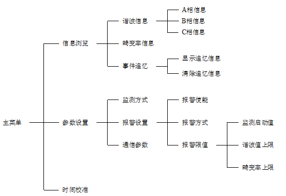 信息瀏覽子菜單用于查看各相諧波信息、畸變率信息及諧波越限追憶信息: