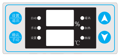 2、設(shè)置參數(shù)模式:電源接通后,抽濕裝置自檢通過后,自動(dòng)進(jìn)入自動(dòng)模式,雙層數(shù)碼顯示當(dāng)前的濕度值和溫度值。按“設(shè)置/退出”鍵可設(shè)置除濕啟動(dòng)值、除濕斷開值、加熱啟動(dòng)值以及無線通訊地址。